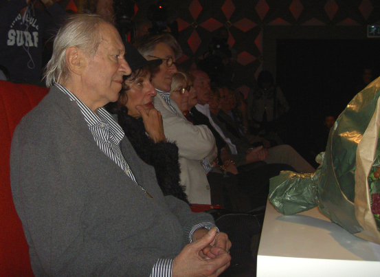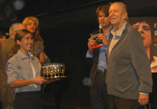 ![]() (foto: Alex Krans) De eerste exemplaren van de dvd- en cd-boxjes werden aan Ramses uitgereikt door Shaffyfan Beau van Erven Dorens. "Een schatkamer, deze dubbel-dvd. Die beelden zijn zo bijzonder, het deed me denken aan Jacques Brel tijdens zijn afscheidsconcert in L'Olympia, dezelfde energie heeft dit ook!" En later: "Ramses is een en al gevoelige snaar." Op de vraag of hij trots was op de nieuwe schijfjes antwoordde Ramses quasi-bescheiden: "Daar ben ik nog niet aan toe."
