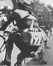 Maar vijfvoudig Tourwinnaar Jacques Anquietil stond er toch ook om bekend dat hij nogal eens een glaasje champagne lustte. (Met glas en al!)